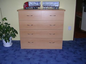 Zhotovíme Vám různé druhy nábytku, např. přebalovací stolky, komody, jídelní stoly, psací a konferenční stolky, věšákové stěny, botníky, police, regály.